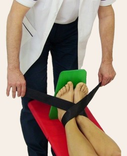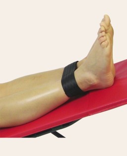Leg lock belt (made by Postural Service) made up of a canvas band reinforced with Velcro. Fundamental to reduce the adaptation or comfort compensations that the body seeks to have as little tension as possible.